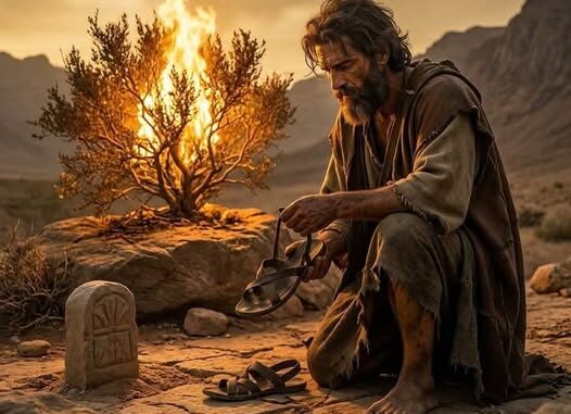 Ao soltar as sandálias e pisar na areia descalço, Moisés passou de um homem livre que dirigia a sua própria vida, para se tornar o servo do fogo do Deus Altíssimo.